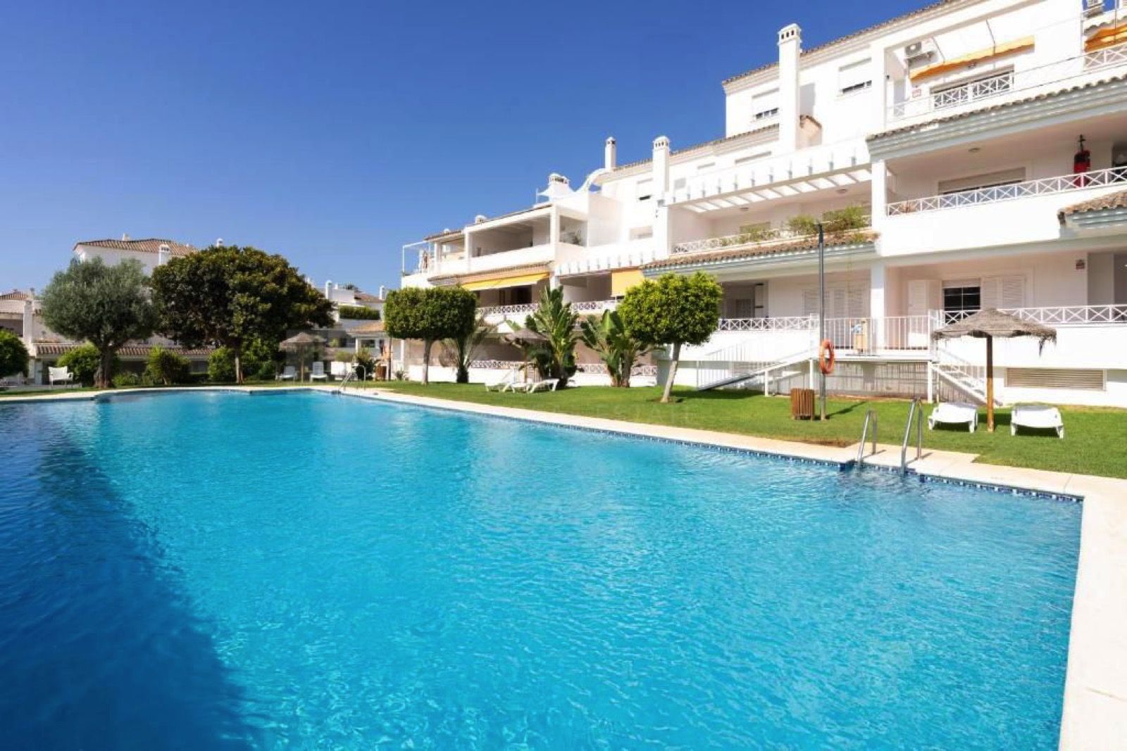 Seize this exceptional opportunity to own a spacious apartment in the prestigious Las Lomas de Río Real urbanisation, nestled in Marbella’s serene East district on the sun-drenched Costa del Sol – a luxurious gated community renowned for its proximity to the Río Real Golf Club, an 18-hole course designed by Javier Arana with stunning sea views, and just minutes from pristine beaches like Playa de Los Monteros, the historic old town with its flower-filled plazas, and upscale amenities including restaurants, international schools, and supermarkets. This prime location offers a peaceful, green-surrounded retreat with easy A-7 access to Puerto Banús or Málaga Airport, ideal for year-round living, a holiday home, or investment in Marbella’s thriving 2025 market, where East properties have seen 5-10% growth, with similar apartments averaging €550,000-€600,000 and strong rental yields amid high demand for golf-adjacent residences.